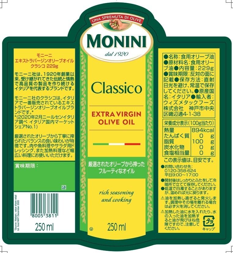 モニーニ エキストラバージンオリーブオイル クラシコ 229g